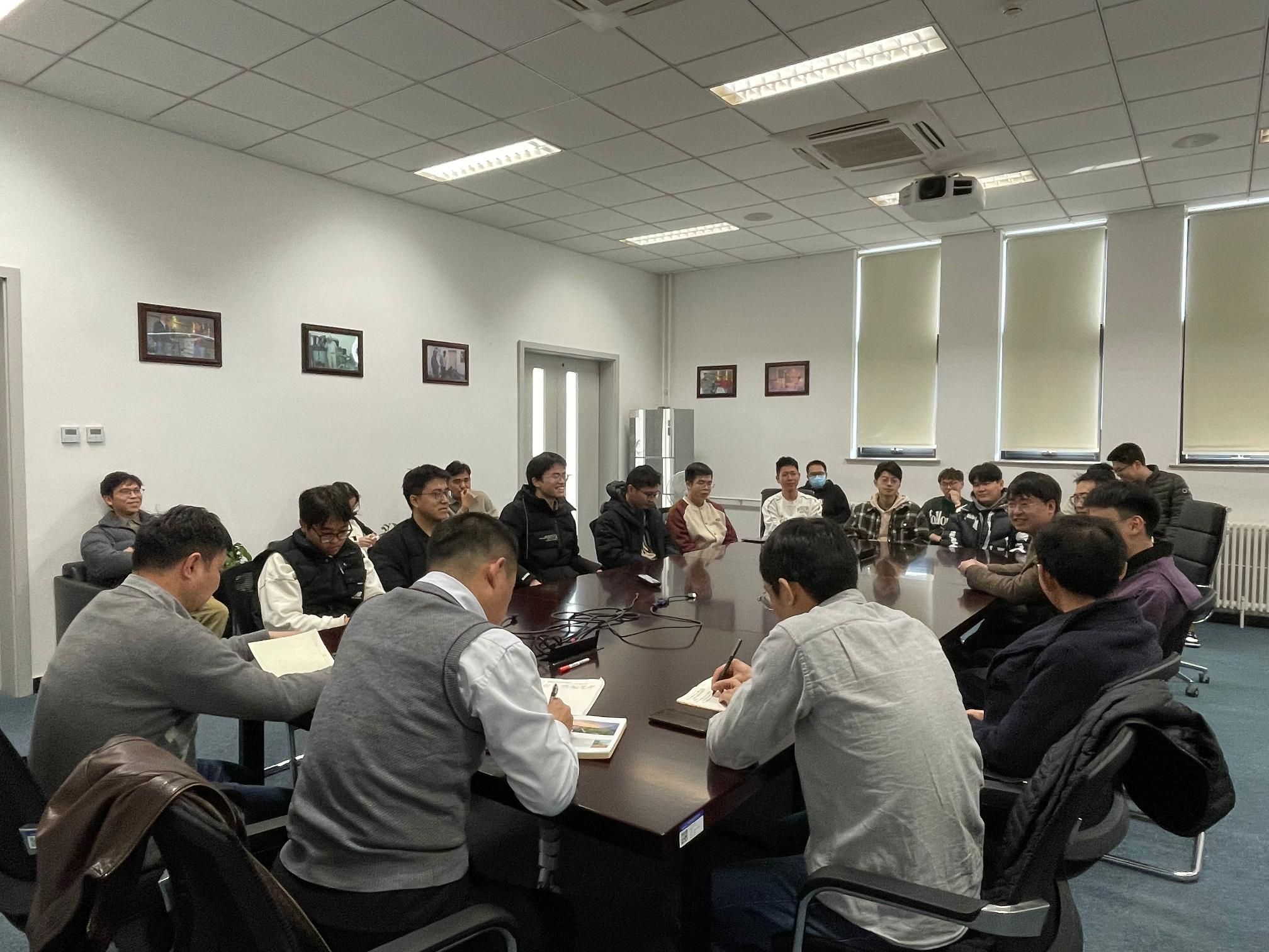 随后,与会学生逐一简要介绍了联合培养中具体研究方向和工作情况,交流了学习心得和科研经验,纷纷表示感谢学院搭建这么好的学习平台——在国家院参加联合培养,能够享有国内领先的仪器设备等优越科研条件和良好的学习生活环境,同时更要将日常实验室任务和学位学业兼顾好,积极适应紧张的工作节奏,继续认真钻研、奋发有为,发扬计测学子的优良传统,努力同学院的发展和成长同频共振。