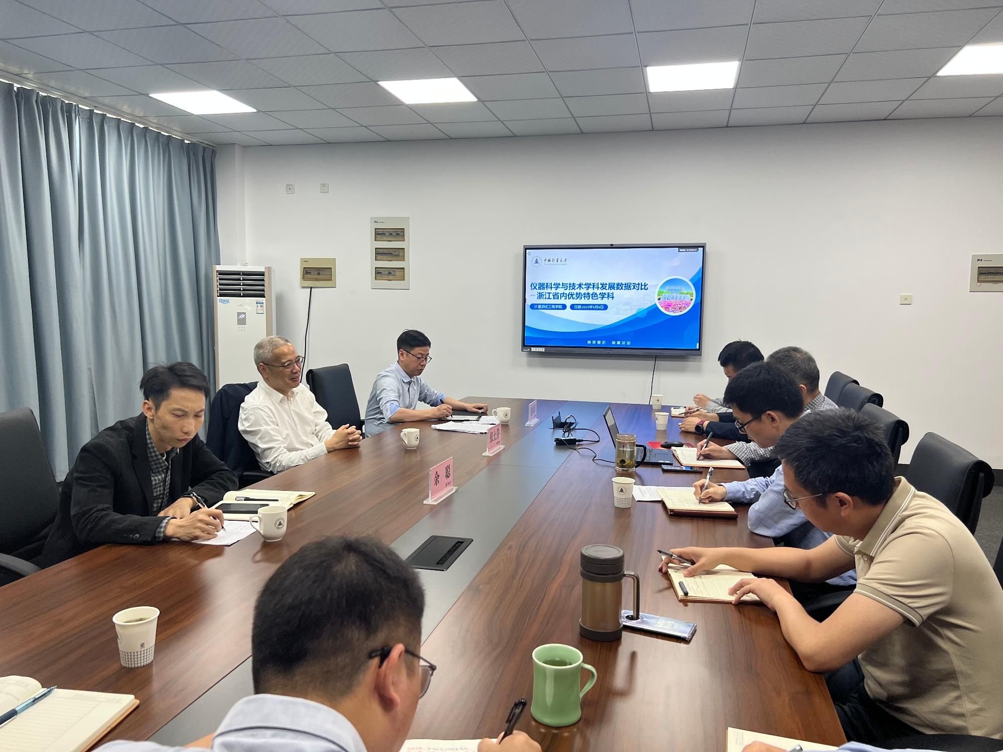 张土乔认真听取了汇报,肯定了近年来学院加大推进学科发展取得的成效,详细了解了学校仪器科学与技术学科发展的现状、存在的问题,不时与大家交流,共谋思路、共寻对策。张土乔表示,加快一流学科建设,是深入贯彻2004年时任浙江省委书记习近平同志莅校视察重要指示精神的必然要求,是充分发挥办学优势特色助力高教强省的必然要求,是新形势下学校推进内涵式高质量发展的必然要求,学院要充分认识到加快一流学科建设的极端重要性,锚定目标、攻坚克难,以学科发展新成效检验主题教育成果。